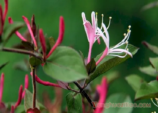 养花资料网 yanghuaziliao.com金银花和二花是一样的,中医上称金银花为二花。金银花初放时洁白如银,两三天后变为金黄色,新旧相参,黄白衬映,故被称为“金银花”。又因此花入冬时虽老叶枯落,可是叶腋又簇新叶,凌冬不凋,故又名“忍冬”。金银花用途广泛,很多药品都会用到金银花的成分。