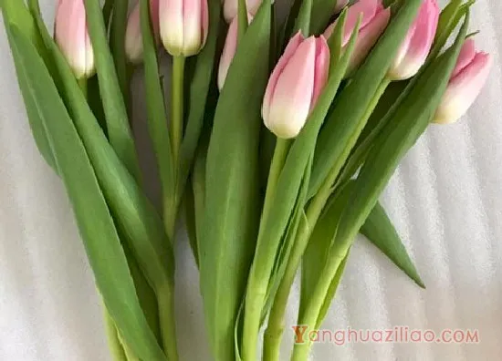 郁金香插花不需要去叶子,插花需要选择新鲜柔软的郁金香,抚摸叶子,可以发出吱吱声的花束就越新鲜。