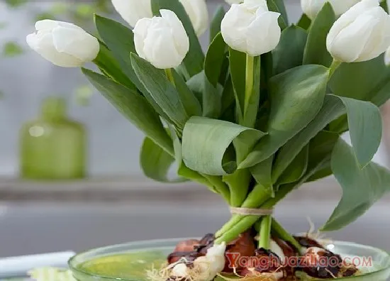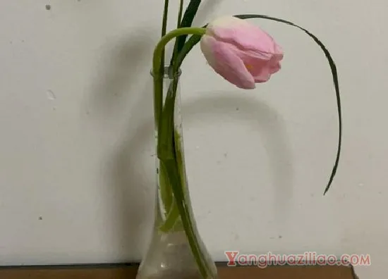 冰冰 养花资料网郁金香插花养护时需要放在阴凉、无风的环境下,室内光线应均匀分布,以免引起植株弯茎现象,可以适当给植株晒散射光,需要勤换水,保持水质清洁,换水时加入少量营养液,这样植株更容易吸收水分,保持活力,可适量延长花期。