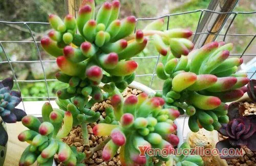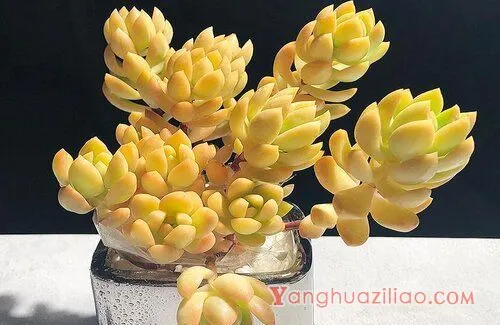 黄丽是好养的多肉植物,它的茎是比较短的,一般排列的比较紧密,叶子很肥厚,适合在半阴的地方生长。