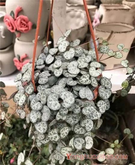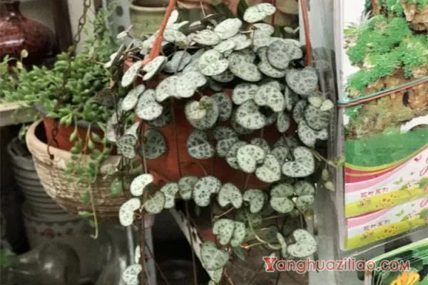 爱之蔓有着长长的枝条,枝条下垂,长满了叶子。虽然这个叶子看起来很像是心形的,就好像是一个个串起来的心,永结同心。但是总整体上看,它也很像是古时候的用绳子串起来的铜钱。