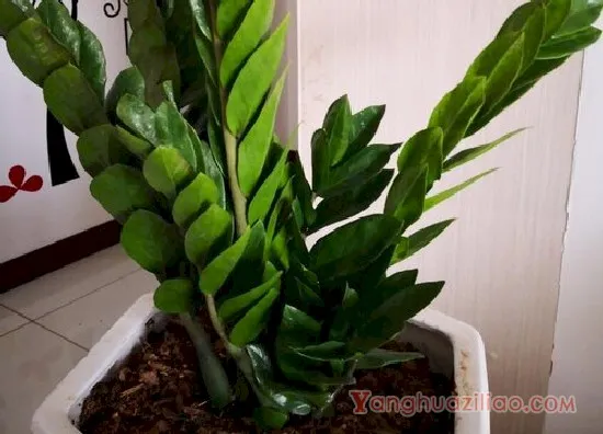 4、分株:金钱树的分株常在春末至夏初,结合换盆进行,盆栽金钱树脱盆后,去除大部分的宿土,修剪下腐烂的部分,在创口处涂抹草木灰,上盆栽种。
