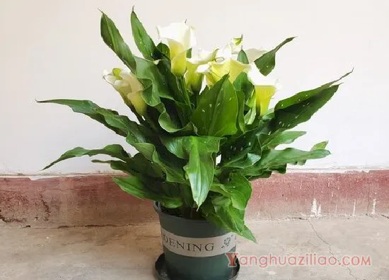 3、马蹄莲见蕾后需要增加施肥量,这样可有效的延长开花时间,不仅花的个头让人满意,而且颜色艳丽,花骨朵常年都有。
