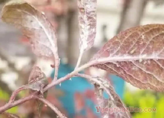 3、白粉病:白粉病对紫叶李的危害严重,影响紫叶李的叶片生长,而且叶片上会出现白粉状的霉层。