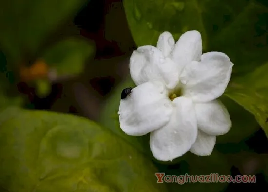 茉莉在开花时期不要在花朵上喷水,以防止花朵提早的掉落,也会导致香味的消失,下雨时应当把盆栽茉莉移到干燥处进行避雨。