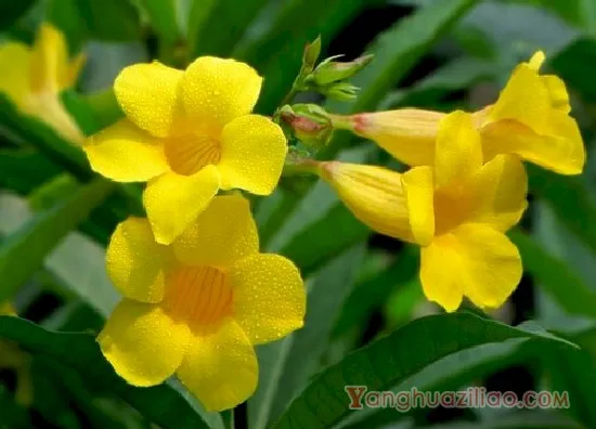 2、及时浇水:黄蝉花适合在较湿润的环境中生长,在生长期间,一定要注意浇水的次数,不能使盆中的土壤缺少水分,发现叶子萎蔫,应及时浇水,但是也应注意盆土中不能存有大量的积水。